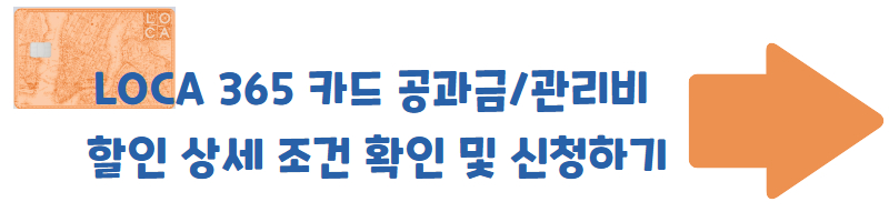 - LOCA 365 선택. 아파트 관리비 할인은 고정비를 줄이는 가장 확실한 방법입니다.